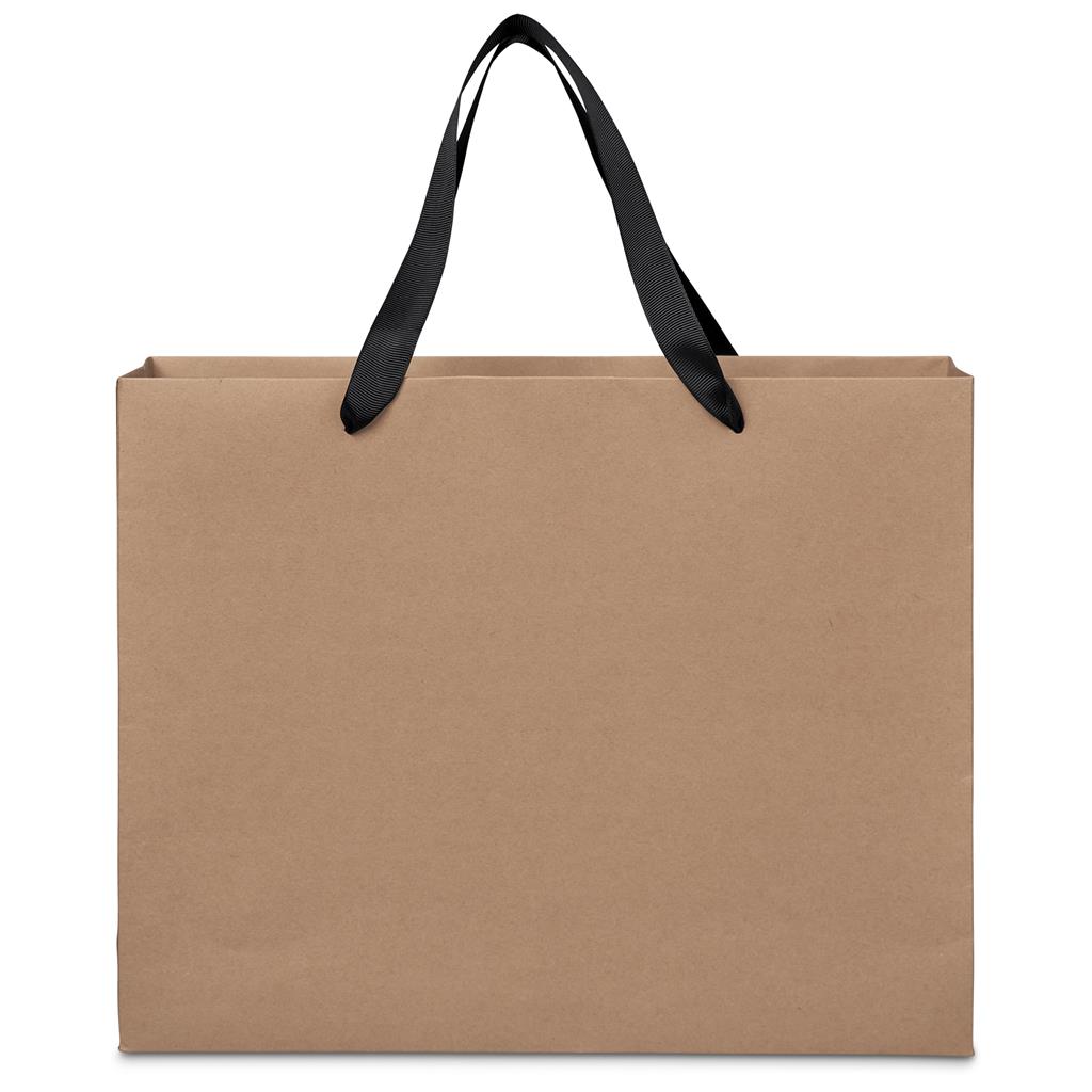 This medium-sized landscape gift bag is made from durable 250gsm kraft paper, offering a sturdy and eco‑conscious packaging solution. Finished with elegant black webbing handles.