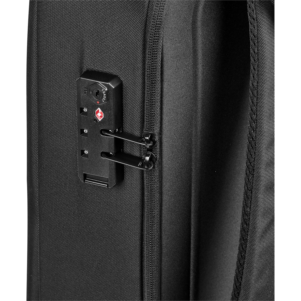 The mix of materials used in the construction of this executive laptop backpack gives it strength and durability, to add to the stylish design. The TSA lock adds a valuable security feature to protect your valued possessions. The external charging point allows you to keep a power bank in your bag and easily access it to charge your phone.