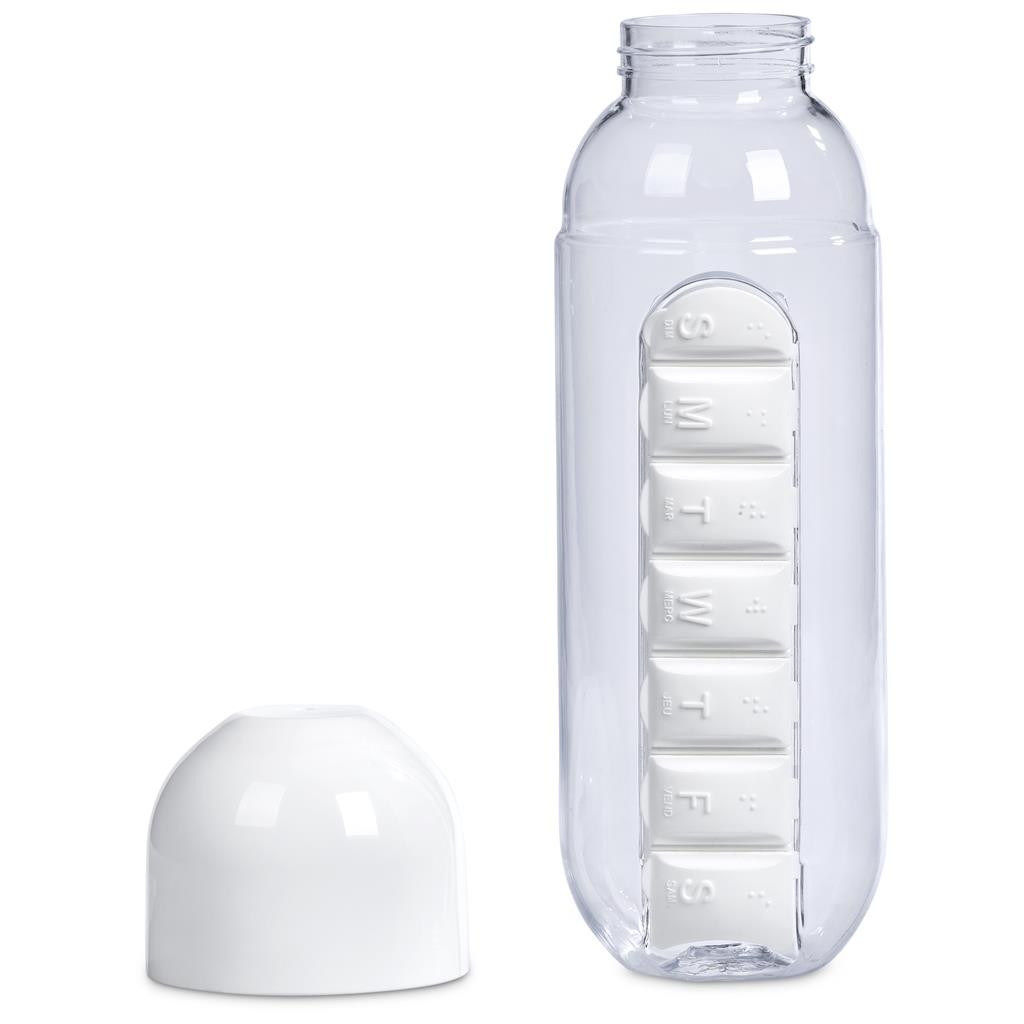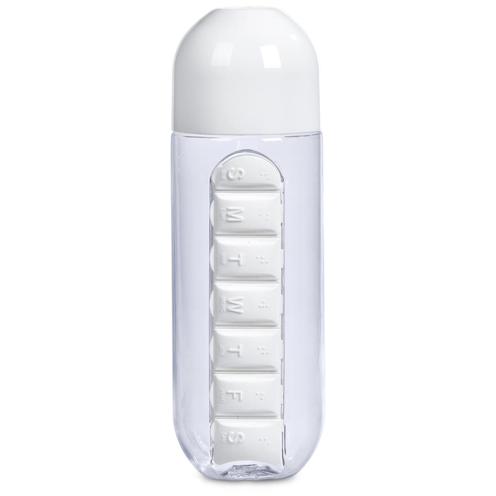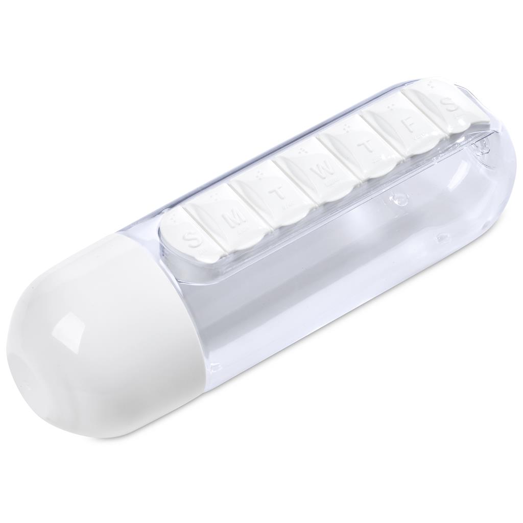 Stay hydrated and stay organised with this clever water bottle featuring a built-in pill case. The integrated seven-compartment storage section keeps your daily pills and vitamins neatly arranged for each day of the week, helping you maintain your routine. For those with busy lifestyles, this bottle keeps your medication and supplements at hand. Practical, convenient, and easy to use, it’s a smart promotional item for wellness-focused brands.