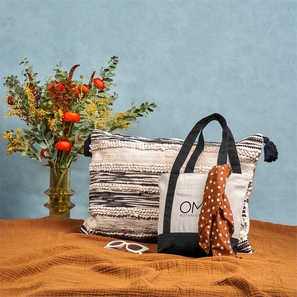 This small cotton gift bag is a great option for making up gift hampers. It features a main zip compartment and cotton handles.