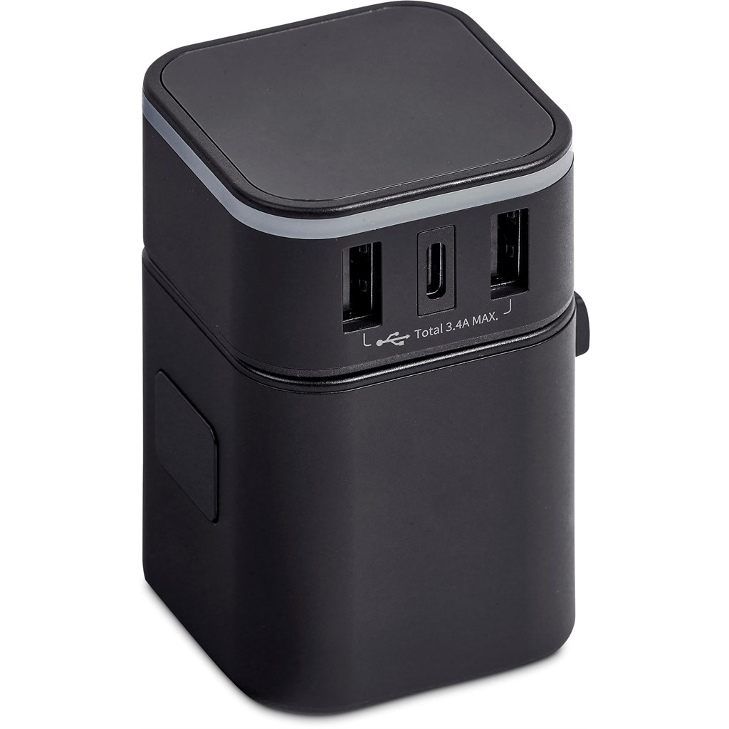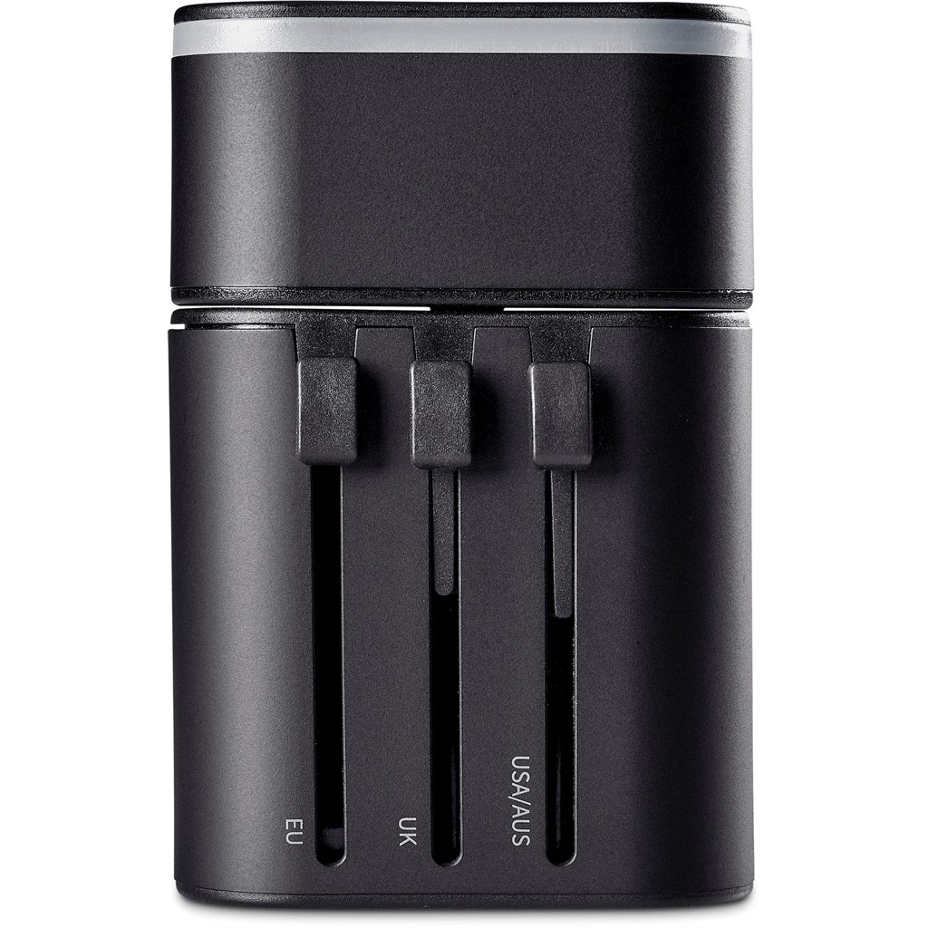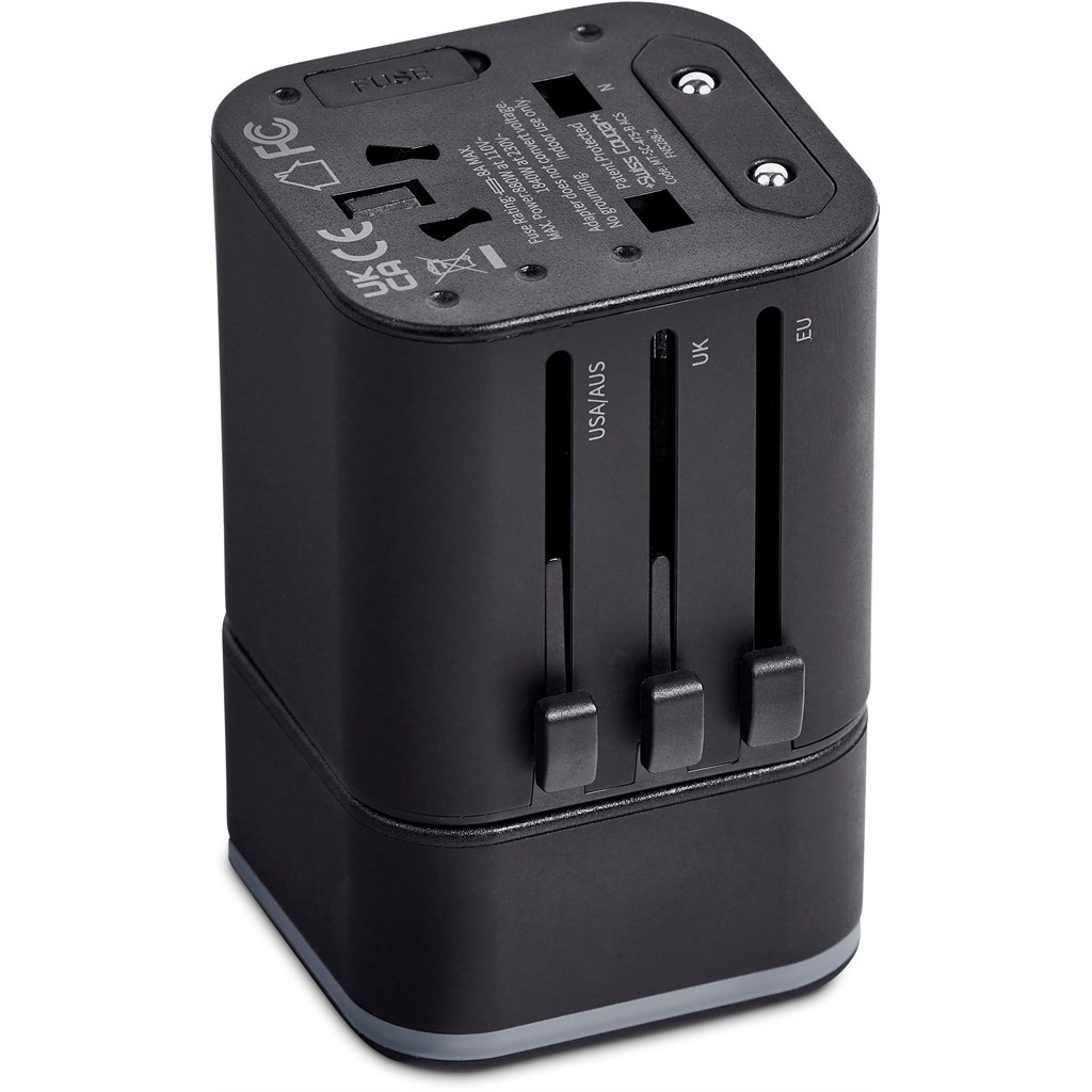 This compact, high-quality travel adaptor will enable you to use your two-prong plug devices or appliances in over 200 countries worldwide. You can also use it to adapt foreign plugs to use a two-prong plug, or to interchange various overseas plug types. It features two USB-A ports and a fast-charging Type-C port, which you can use to charge your devices at home or when travelling abroad.