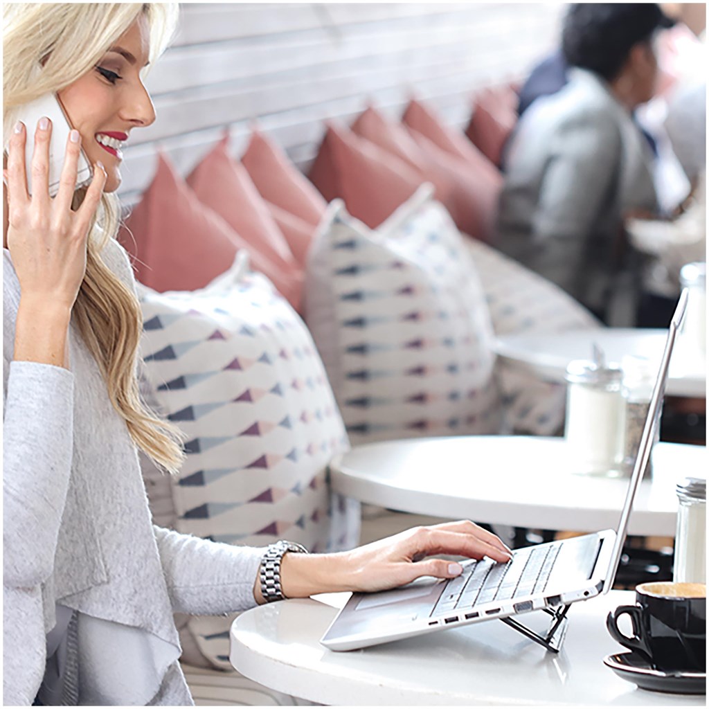 portable, compact, lightweight, and easy to use. Be it at home, at the office, a coffee shop, the airport or a client’s boardroom, the Eezigo laptop stand can be set up or folded away in under five seconds.