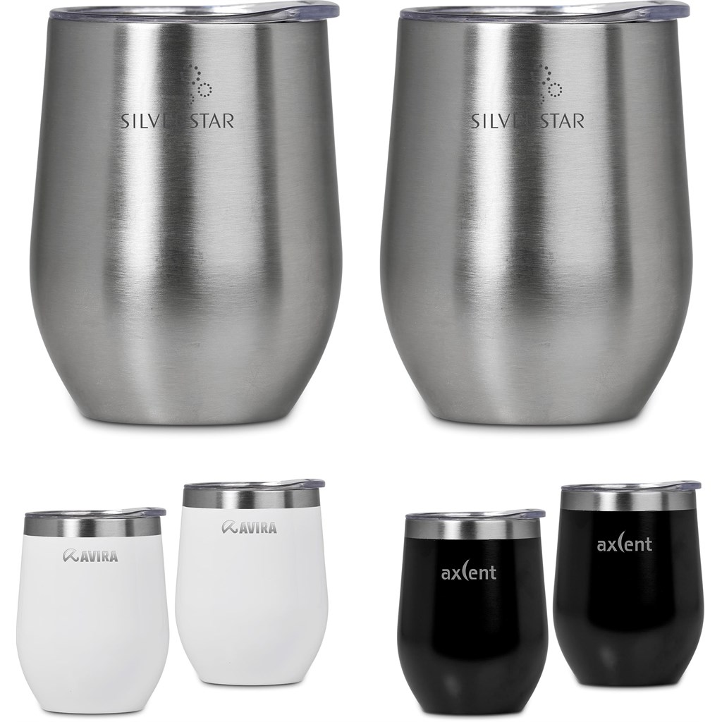 The stainless steel, double-wall vacuum construction of this classic design, BPA-free cup will keep liquids hot or cold for hours. It’s best used as an on-the-go coffee cup, or as a tumbler for wine or other beverages when you’re outdoors. It has a secure, transparent lid with a sliding closure. Washing by hand is recommended.